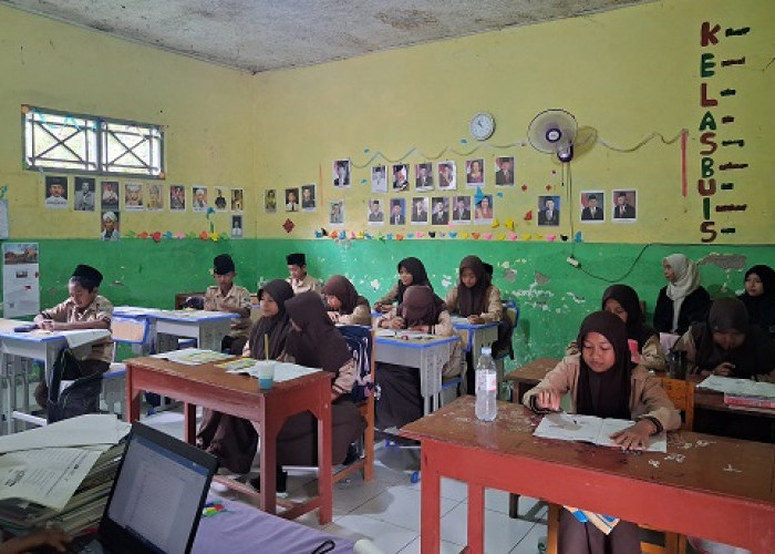 Suasana pembelajaran Al-Qur'an Hadist di kelas VI MI Islamiyah Desa Karangjati Kecamatan Tarub. -=ISTIMEWA=---