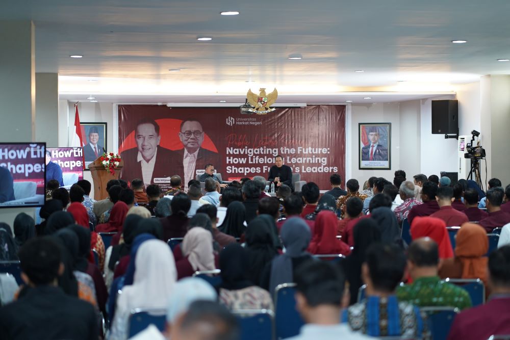 KULIAH UMUM- Mengambil tema “Navigating the Future: How Lifelong Learning Shapes Future’s Leaders,” Gita Wirjawan mengajak mahasiswa siap menghadapi tahun 2045 di Aula Kampus Mataram Universitas Harkat Negeri, Kota Tegal.-ISTIMEWA-Radartegal.disway.id