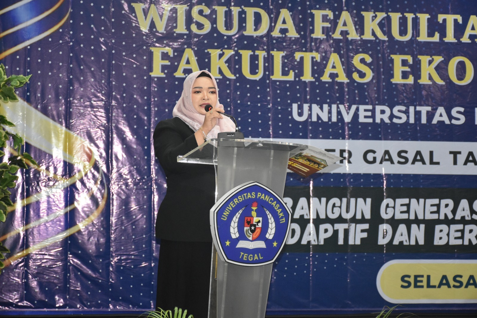 TEGAL, radartegal.com - Fakultas Ekonomi dan Bisnis Universitas Pancasakti (FEB UPS) TEGAL menggelar acara Wisuda Fakultas jenjang sarjana semester gasal tahun akademik 2025/2026. Dengan tema "Membangun generasi akademik yang unggul, adaptif dan berdampak di era digital," di Aula Kampus 2 UPS, Jalan Perintis Kemerdekaan Panggung Timur Kota TEGAL, Selasa, 7 April 2026.