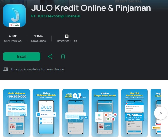 Rekomenadsi berikutnya ada Julo yang juga menyediakan pinjaman tunai dengan proses yang cepat. Terlebih banyak fitur yang bisa dimanfaatkan oleh pengguna.