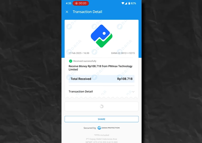Dalam video yang diunggah oleh BANG GAPTEK ID, ia menunjukkan bukti withdraw dari aplikasi ini. Dengan hanya menonton video selama 30 menit, ia berhasil mengumpulkan $7 atau sekitar Rp100.000, yang langsung cair ke akun DANA miliknya.