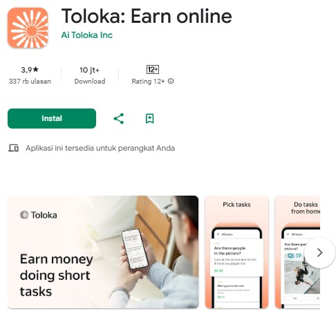 Aplikasi dari Yandex ini menawarkan berbagai tugas sederhana, seperti mengklasifikasikan gambar, mengisi survey, dan lain-lain. Tampilan aplikasinya juga sederhana dan mudah dimengerti pemula.