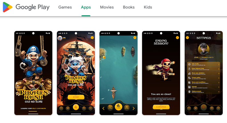 Pirate Rush adalah game berbasis petualangan yang memungkinkan pemain mendapatkan koin dengan menyelesaikan berbagai misi. Berbeda dari aplikasi lain, Pirate Rush tidak mengharuskan pengguna untuk mengundang teman agar bisa mendapatkan hadiah.