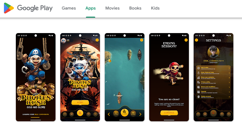 Tidak seperti aplikasi lain yang mengharuskan pengguna mengundang teman untuk mendapatkan komisi, Pirate Rush memungkinkan pemain untuk langsung mengumpulkan hadiah hanya dengan bermain.