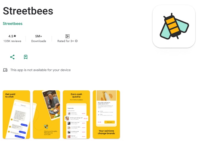 Di Streetbees Anda bisa membagikan pendapat Anda dan dapatkan bayaran menarik. Menariknya, Anda juga bisa chatting di aplikasi ini dan akan dibayar juga.