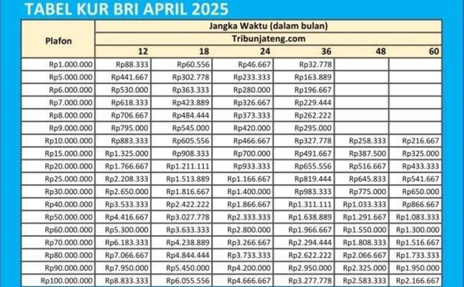 KUR BRI 2025 menawarkan plafon pinjaman mulai dari Rp50 juta hingga Rp500 juta dengan bunga terjangkau. Modal usaha Rp500 juta syarat mudah ini bisa diajukan secara online maupun offline, memudahkan pelaku usaha di seluruh Indonesia.
