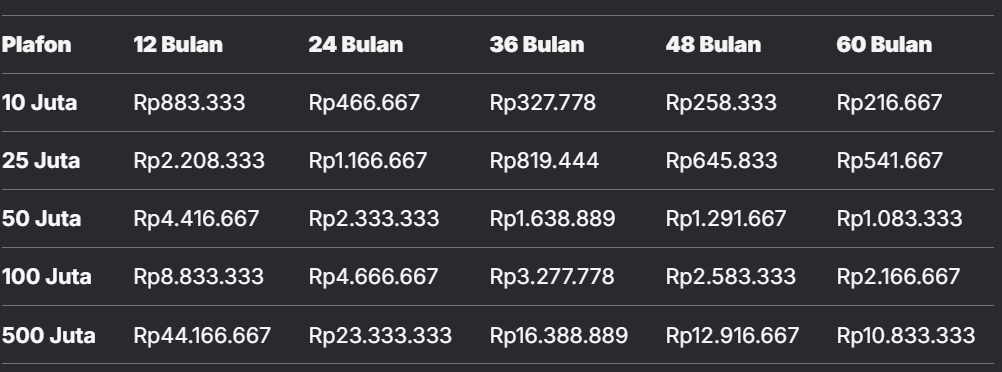 Berikut simulasi cicilan KUR BRI dengan bunga 6% per tahun: