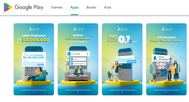 JULO merupakan salah satu aplikasi pinjol yang sudah cukup lama eksis di Indonesia dan telah terdaftar serta diawasi oleh Otoritas Jasa Keuangan (OJK). Aplikasi ini menyediakan pinjaman hingga Rp50 juta, tanpa harus melalui BI Checking.