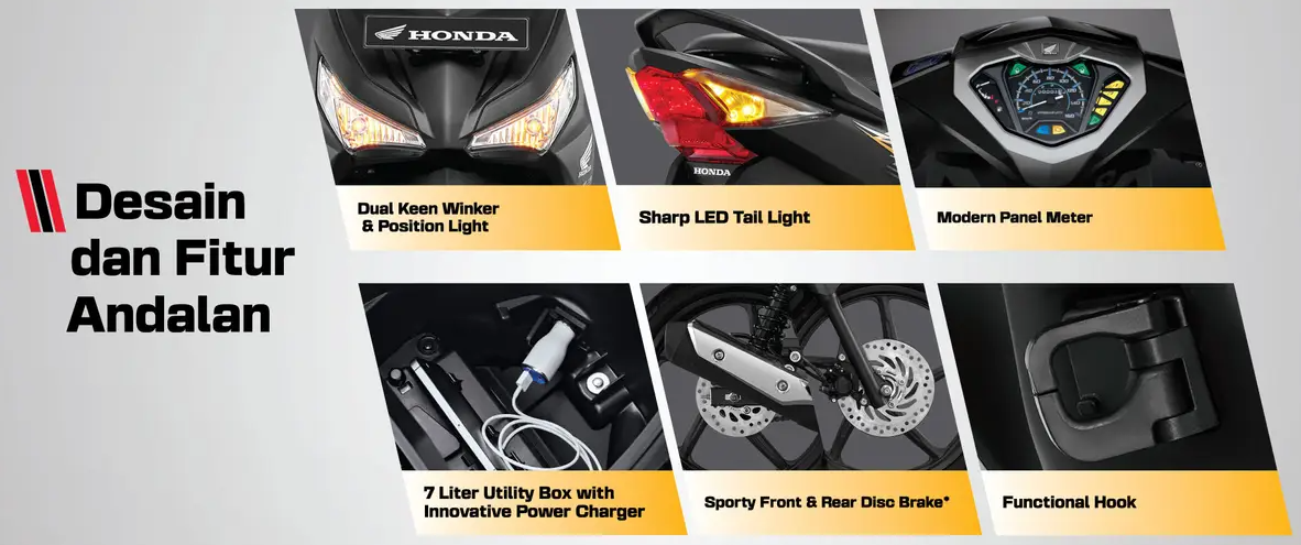 Motor bebek legendaris ini masih bertahan berka desain yang kekinian, mesin irit namun bertenaga, dan fitur-fitur fungsional yang menyasar pengguna harian.