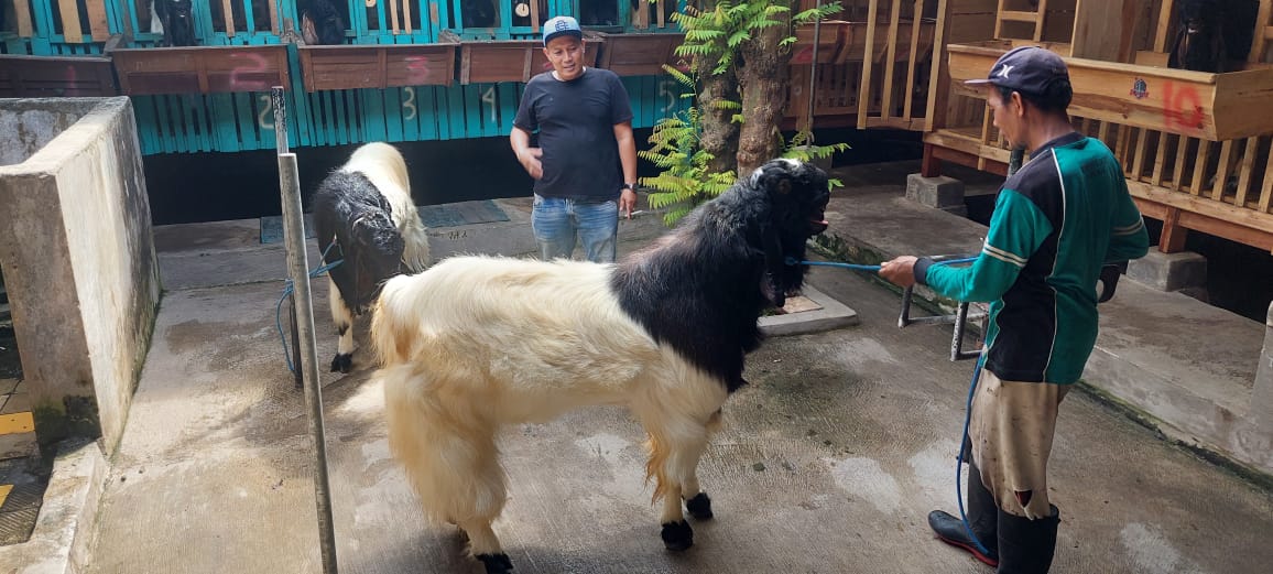 "Jadi kami sengaja beli kambing super jumbo ini untuk kurban Hari Raya Idul Adha," ujar Pemilik Kambing Raksasa Asepsia Awaliyanto, saat ditemui di HM Jaya Farm Desa Tembok Luwung, Jumat, 9 Mei 2025.