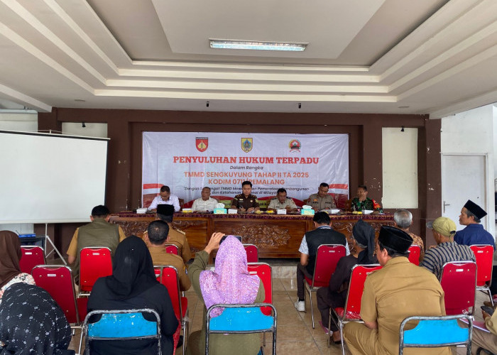 PEMALANG, radartegal.com - Satgas TMMD Sengkuyung tahap II tahun 2025 Kodim 0711/Pemalang menggelar penyuluhan hukum terpadu kepada masyarakat Desa Bulakan dan sekitarnya, Senin 26 Mei 2025. Kegiatan yang digelar di balai Desa Bulakan kecamatan Belik itu digelar daam rangka meningkatkan kesadaran hukum masyarakat.