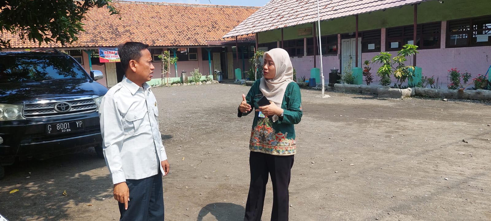 MONITORING - Anggota DPRD Kabupaten Tegal H. Bakhrun ditemui Kepala SDN Demangharjo 02 Rina Taurisia, saat melakukan monitoring di sekolah tersebut, Selasa, 3 Juni 2025 lalu.-Yeri Noveli-Radartegal.disway.id