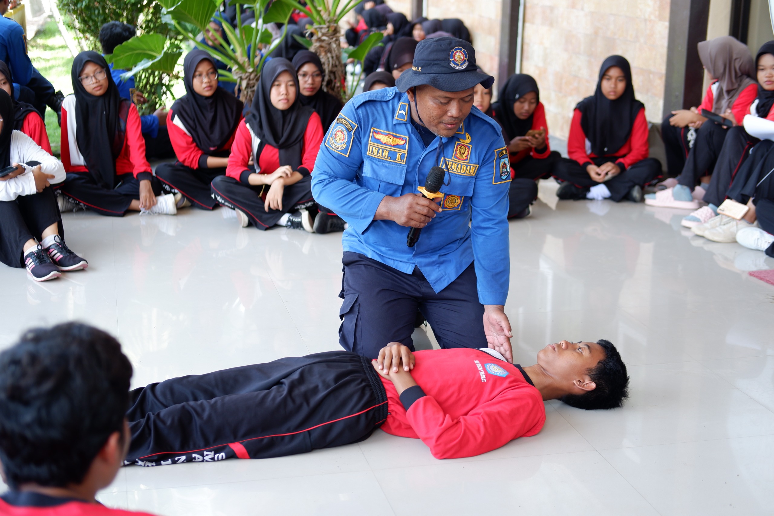 SOSIALISASI - PT Pertamina Patra Niaga Fuel Terminal Tegal (FT Tegal) bersama Dinas Pemadam Kebakaran Kabupaten Tegal (Damkar Kab. Tegal) mengadakan kegiatan Sosialisasi Pemadaman Kebakaran, Penanggulangan Kebocoran Gas LPG dan First Aid kepada siswa sisw-Istimewa -