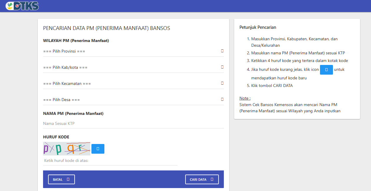- Kunjungi situs cekbansos.kemensos.go.id.