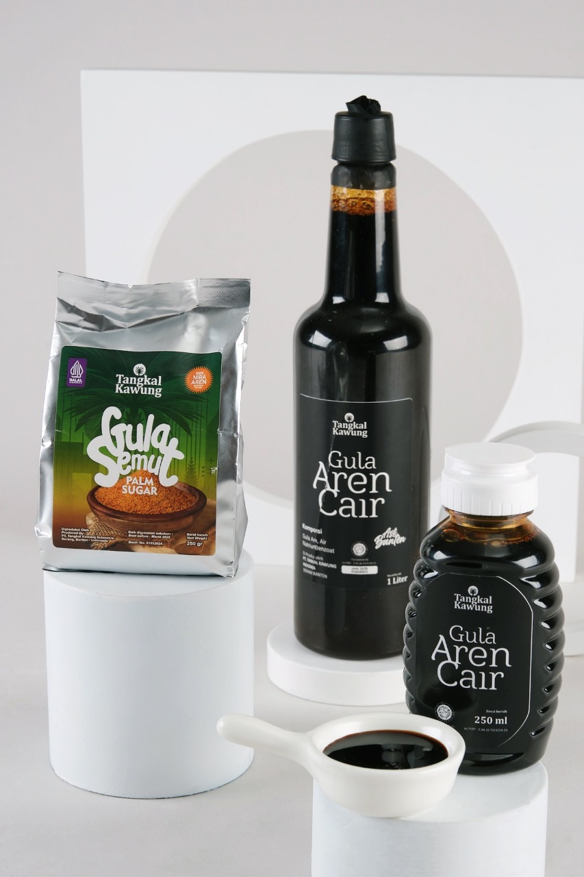 Menangkap peluang itu, PT Tangkal Kawung Indojaya, salah satu UMKM asal Kelurahan Trondol, Kecamatan Serang, Kota Serang, Banten hadir dengan merek dagang Tangkal Kawung. Produk yang dihasilkan ada dua pilihan, yakni gula aren dalam dua varian, yaitu bubuk dan cair, untuk memenuhi kebutuhan pasar yang beragam.