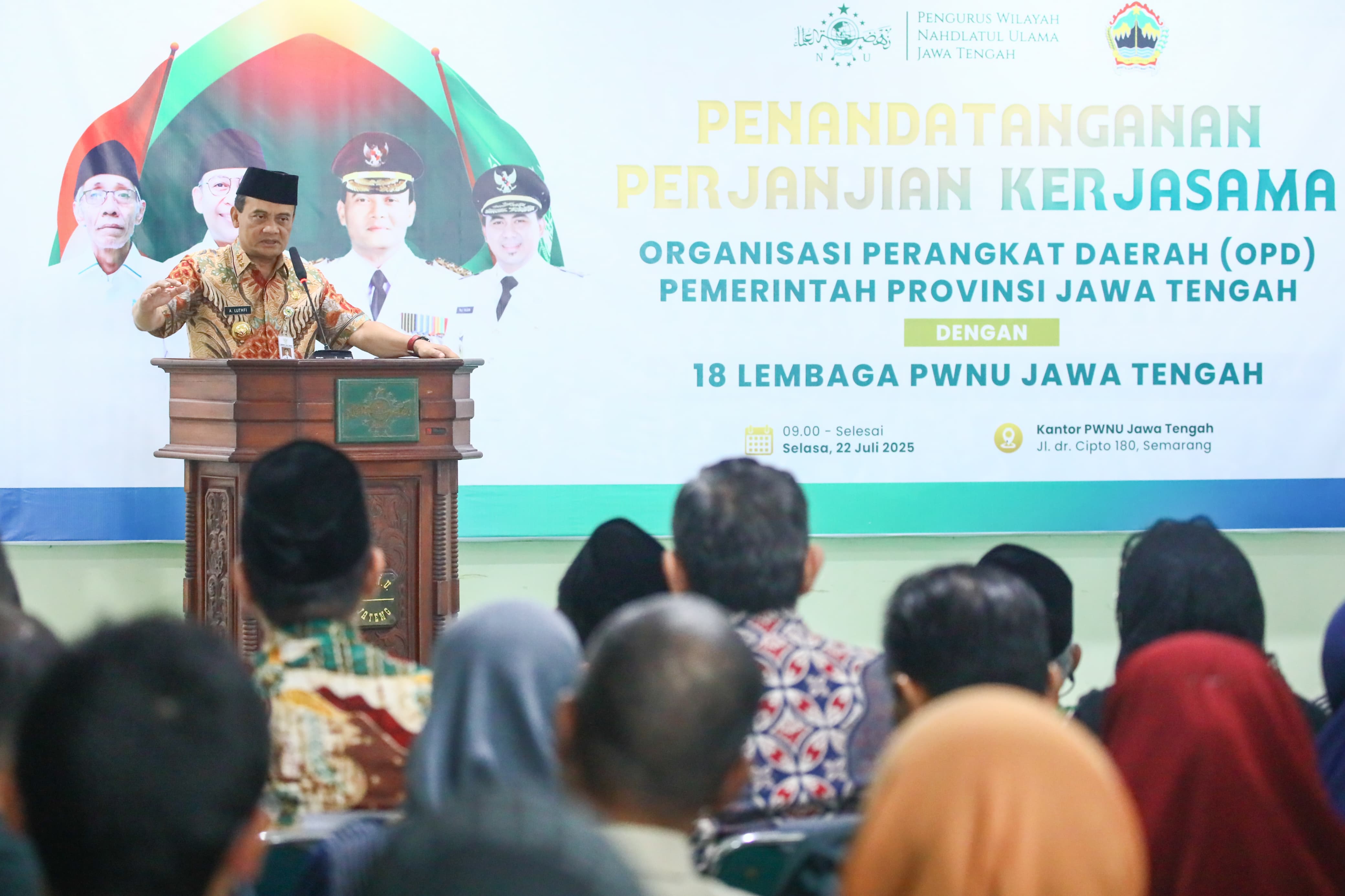 Kolaborasi itu ditandai dengan penandatanganan kerja sama antara Setda Provinsi Jawa Tengah dan Organisasi Perangkat Daerah (OPD) terkait dengan 18 Lembaga PWNU Jateng di di Kantor PWNU Jateng, Kota Semarang, Selasa, 22 Juli 2025.