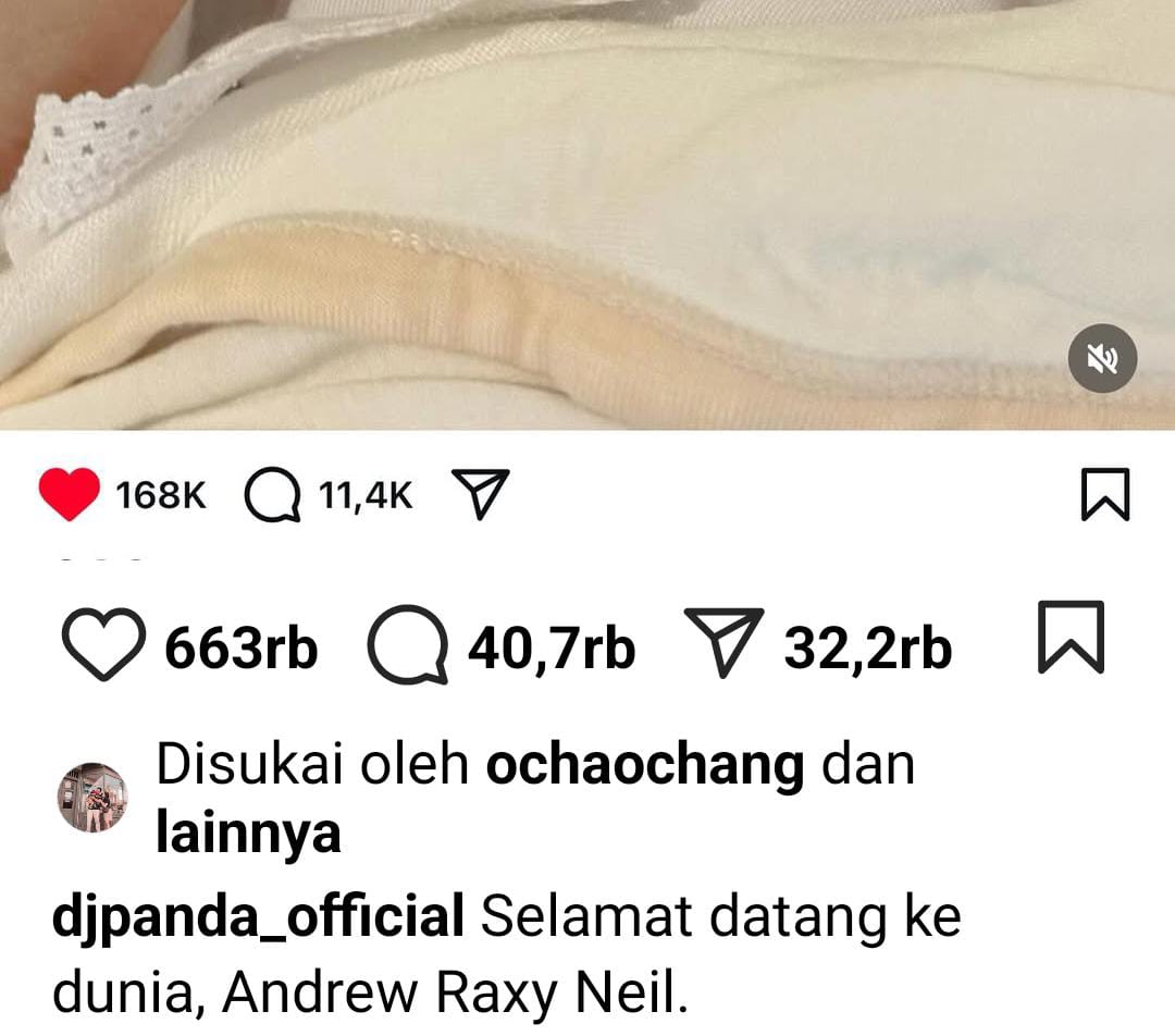 “Selamat datang ke dunia, Andrew Raxy Neil. Kehadiranmu adalah bukti bahwa cinta Tuhan tak pernah kehabisan cara untuk mengejutkan dunia dengan keajaiban,” tulis DJ Panda.