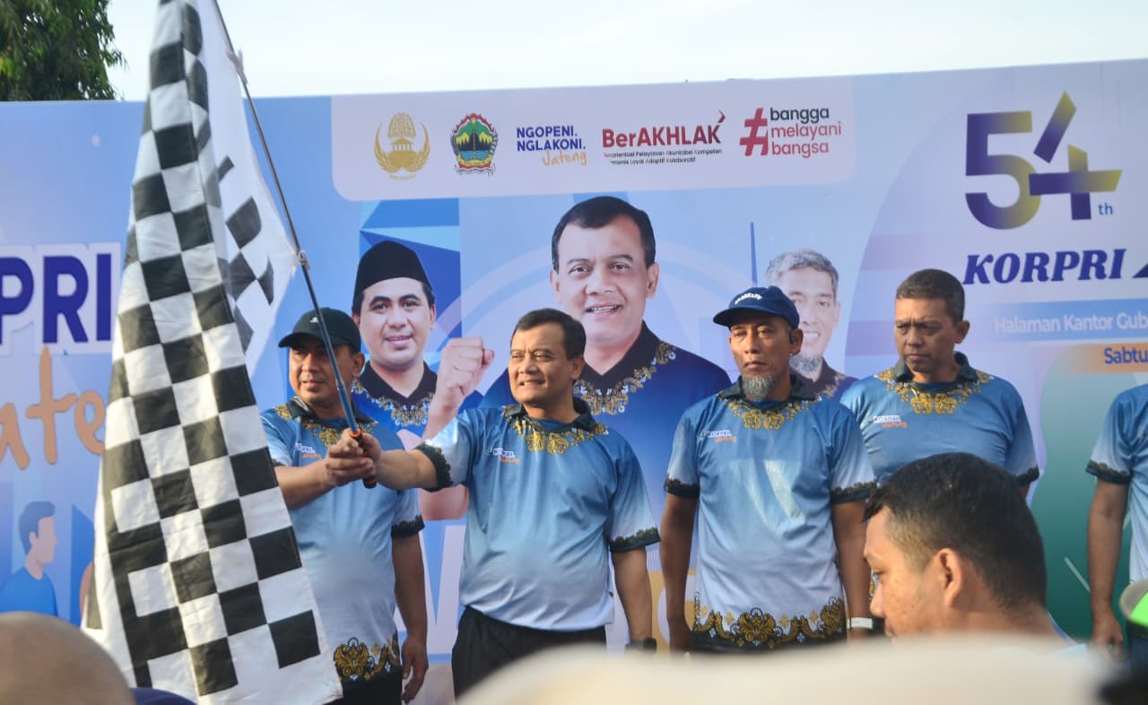 Radartegal.com– Jalan sehat dalam rangka Hari Ulang Tahun (HUT) ke-54 Korps Pegawai Negeri (Korpri) tingkat provinsi Jateng di halaman Kantor Gubernur Jawa Tengah, pada Sabtu, 29 November 2025 berlangsung meriah.
