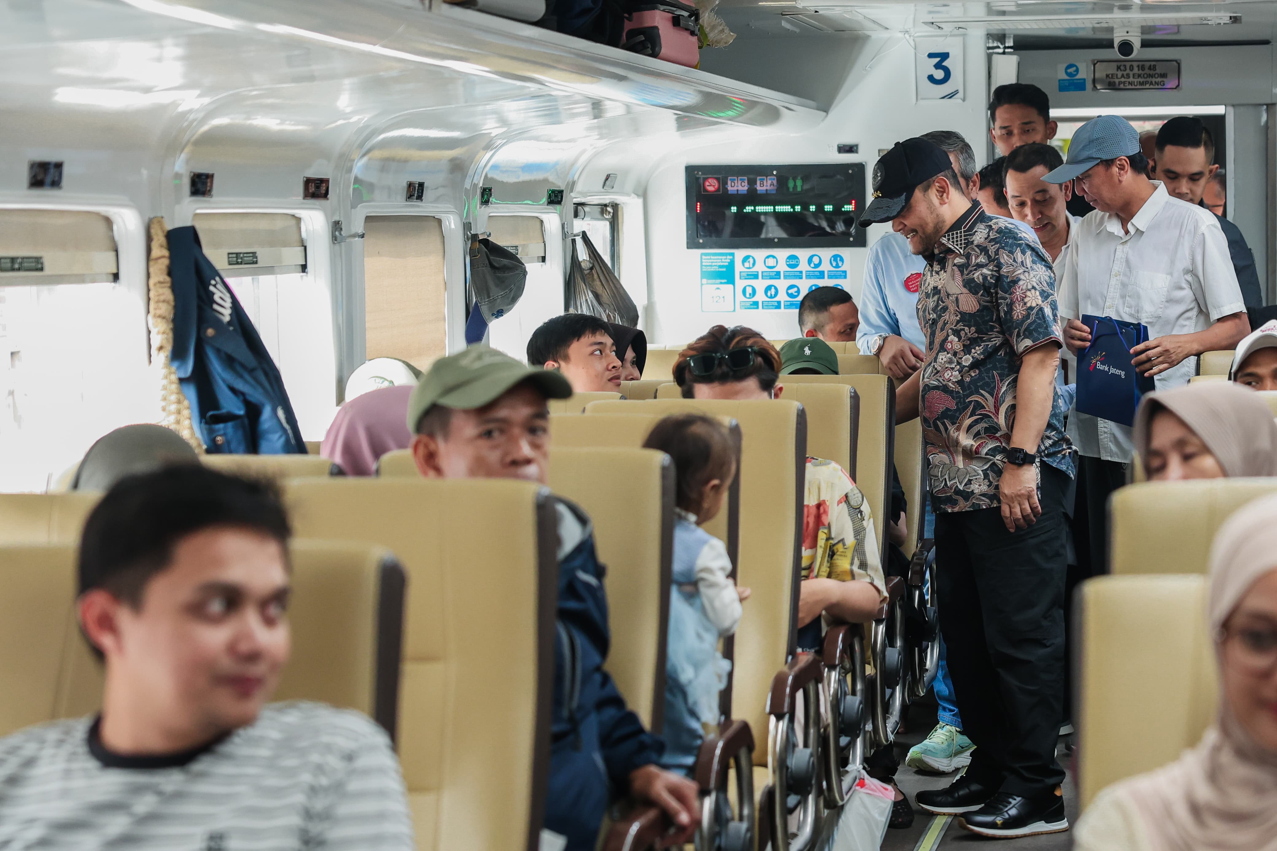 Menurut Gubernur Luthfi, program balik rantau gratis ini difasilitasi dengan moda kereta api dan bus. Khusus pada hari ini, 320 peserta yang diberangkatkan dengan kereta api dari Stasiun Tawang menggunakan empat gerbong.